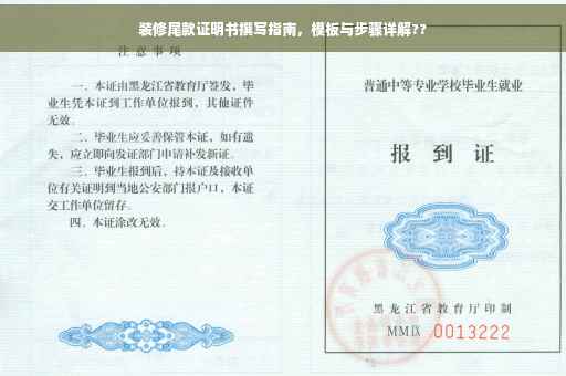 通过本文的介绍,希望业主对装修尾款证明书有更加深入的了解,在撰写装修尾款证明书时,业主应遵循规范操作,确保证明书的真实性和合法性,如有疑问,建议及时咨询专业律师或相关机构,本文为业主提供了详细的装修尾款支付指南,包括了解支付流程、准备材料、撰写规范等,旨在帮助业主顺利完成尾款支付,确保装修款项的顺利结清。