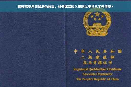 摘要:本文将介绍如何撰写房贷收入证明,揭示每月三千月供背后的故事。通过房贷收入证明,展示借款人的收入状况及还款能力,帮助顺利申请房贷。本文将简要介绍收入证明的主要内容,包括收入构成、还款能力等方面,并给出相应的写作建议和注意事项。让读者了解如何准备充分的房贷收入证明,确保顺利获得贷款批准。