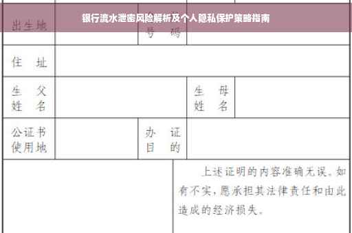 3. 信用风险:银行流水泄露可能导致个人信用状况受损,进而影响个人贷款、信用卡申请等金融活动。