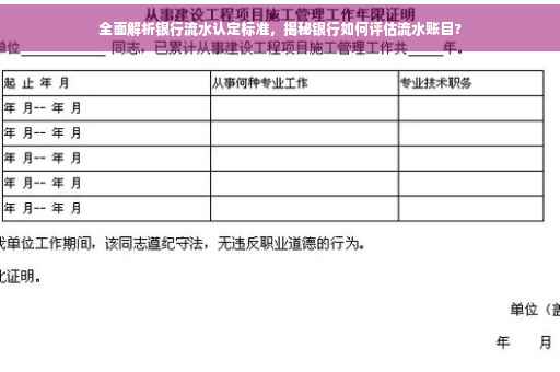 随着经济的发展和金融市场的繁荣,银行业务已成为人们日常生活中不可或缺的一部分,银行流水作为评估个人经济实力和信用状况的重要指标,对于贷款申请、信用卡办理以及个人财务管理等方面具有重要意义,本文将深入解析银行认定流水标准的相关内容,帮助读者更好地了解银行流水的重要性及其认定标准。