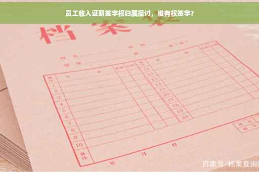 摘要:本文探讨了员工收入证明的签字权归属问题,主要讨论了谁签字有效的相关问题。文章指出,员工收入证明的签字权应该归属于公司授权的相关人员,如人力资源部门负责人或上级领导等。对于员工自行出具的收入证明,必须经过公司认可并加盖公章方为有效。本文旨在明确员工收入证明签字权的归属问题,以保障公司和员工的合法权益。