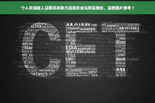 农业现代化的推进为个人农场的发展带来了广阔的空间和机遇,本文提供的个人农场收入证明范本,旨在助您在融资、合作等方面更加便捷,文中介绍了提高农场收入的方法和收入证明的重要性,希望为您的农场发展提供参考和帮助,愿您在农业领域取得更大的成功!