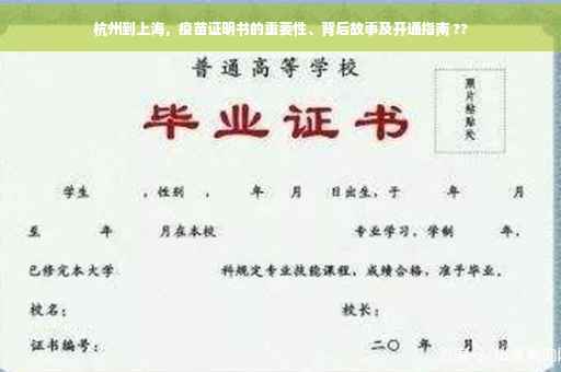 随着全球疫情的蔓延,疫苗成为了人们关注的焦点,作为中国的两个重要城市,杭州和上海的居民更是对疫苗保持着高度的关注,疫苗证明书逐渐成为了人们出行的必备文件之一,本文将围绕杭州到上海疫苗证明书的重要性,探讨其背后的故事,以及给人们带来的启示。