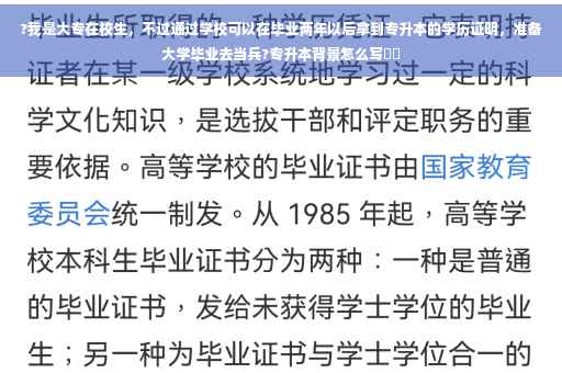 建议可以在没有取得本科毕业证之前就去当兵,一是更年轻,精力充沛,在部队可以得到更好的锻炼机会,二是可以得到更多的发展前景。