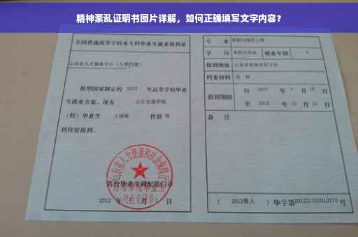 摘要:精神紊乱证明书是一种证明个人精神状态的正式文件,其图片文字需要清晰、准确、专业。在撰写时,应包含患者的基本信息、症状描述、诊断结论、医生建议等内容。文字表达要简练明了,使用专业术语,并注重客观描述,避免主观臆断。应注意证明书的格式规范,包括标题、编号、日期等。图片应清晰展示证明书的整体布局和内容,方便查阅和理解。