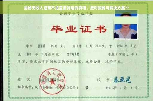 摘要:,,本文将揭示无收入证明不给盖章背后的真相,并探讨如何应对这一问题。面对无收入证明无法盖章的困境,我们可以采取一些应对策略。了解拒绝盖章的具体原因,并寻求相关证据或补充材料来解决问题。寻求专业法律咨询,以了解自身权益和合法途径。保持耐心和冷静,与相关机构进行沟通,寻求解决方案。本文旨在帮助受困于此问题的人们找到应对之策。