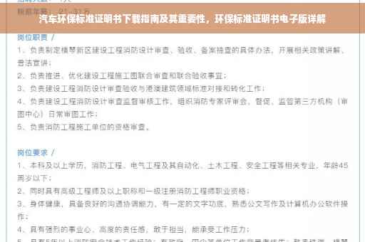 随着环保意识的日益增强,汽车环保问题已成为公众关注的焦点,汽车环保标准证明书作为评估汽车环保性能的重要依据,对于推动汽车工业的绿色发展和保护生态环境具有至关重要的作用,本文将为您详细介绍汽车环保标准证明书的下载方式、内容及其重要性,以帮助广大车主和消费者了解并重视这一证书。
