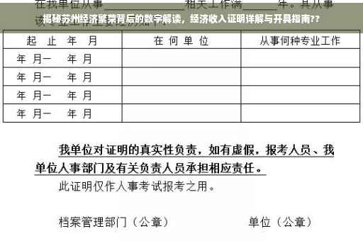 摘要:苏州经济繁荣,其经济收入证明是城市发展的有力见证。想要获取经济收入证明,可在所在单位财务部门或人力资源部门开具。文章将为您解读苏州经济背后的数字,揭示这座城市的经济实力和活力,带您了解繁荣背后的秘密。