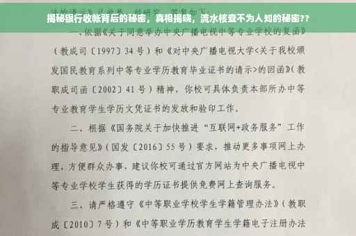 摘要:揭露银行收帐背后的真相,探究其流水核查的真相。揭示某些银行在收帐过程中不查流水账单的现象,深入了解背后的操作方式和原因。此内容旨在帮助公众更加明智地了解银行业务,维护个人权益。
