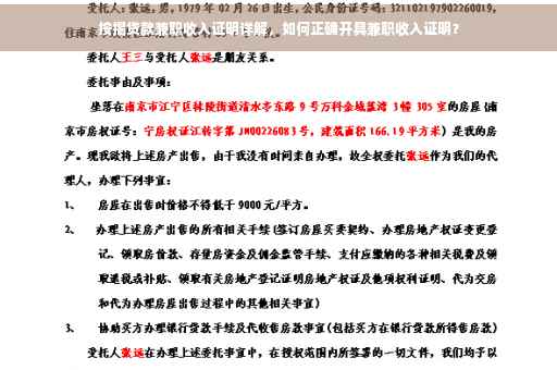 摘要:本文将详细介绍按揭贷款兼职收入证明的相关内容。包括按揭贷款兼职收入证明的重要性、开具流程、所需材料以及注意事项等。帮助读者了解如何正确开具按揭贷款兼职收入证明,以便顺利申请按揭贷款。文章旨在让读者了解兼职收入在按揭贷款申请中的认可程度及如何合规提供证明,确保贷款申请的顺利进行。