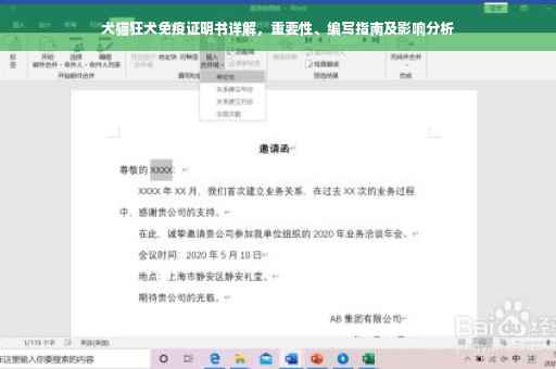 摘要:犬猫狂犬免疫证明书对于宠物健康和公共安全至关重要。该证明书记录了宠物接受狂犬疫苗注射的信息,证明了宠物的健康状态,并有助于预防狂犬病的传播。撰写犬猫狂犬免疫证明书时,需包含宠物基本信息、疫苗品牌、接种日期、有效期等重要内容。正确填写和及时更新免疫证明书,对于保障宠物健康、维护公共健康安全具有积极影响。