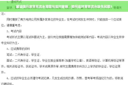 主要包括与银行贷款相关的法律法规和政策文件,如《个人住房贷款管理办法》、《征信业管理条例》等,借款人在申请贷款前,应详细了解和熟悉这些法规和政策,确保自己的权益得到保障,希望本文的解读和策略能对大家在面临银行房贷流水难题时提供一定的帮助和指导。