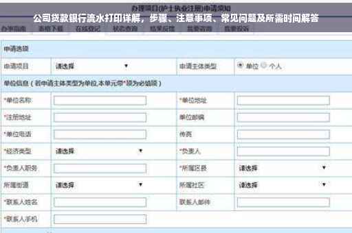 摘要:本文将详细介绍公司贷款打印银行流水的步骤、注意事项和常见问题解答。包括打印流水的具体流程、所需时间以及可能遇到的问题。读者将了解到如何正确打印银行流水,确保信息的准确性和完整性,以便顺利申请公司贷款。注意事项包括保护账户安全、确认打印内容等。本文还将解答关于打印银行流水常见的问题,如需要多长时间等。