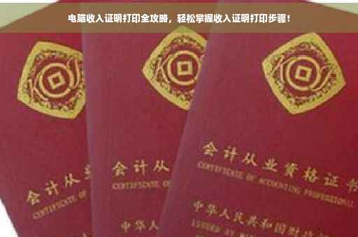 通过本文的详细介绍,相信您已经掌握了如何通过电脑打印收入证明的方法,在实际操作中,建议您仔细核对信息,确保打印出来的收入证明准确无误,建议您定期备份收入证明文件,以防意外丢失,希望本文能为您的生活和工作带来便利,如遇到任何问题,欢迎随时查阅本文或寻求专业人士的帮助。