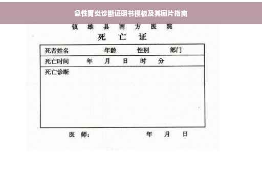 摘要:,,本摘要提供了一份急性胃炎诊断证明书的模板,包括患者基本信息、病史描述、诊断依据和治疗建议等关键内容。通过图片展示,更直观地呈现了诊断证明书的格式和样式。该模板对于医生快速准确地出具急性胃炎诊断证明具有参考价值,同时也为患者提供了便捷的获取诊断证明的方式。