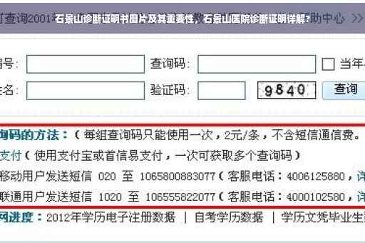 在当今社会,随着医疗行业的快速发展,诊断证明书在各个领域的重要性日益凸显,作为石景山地区的患者,了解诊断证明书的作用、获取方式及注意事项是至关重要的,本文将详细介绍石景山诊断证明书图片的相关知识,帮助患者及其家属更好地理解和运用。