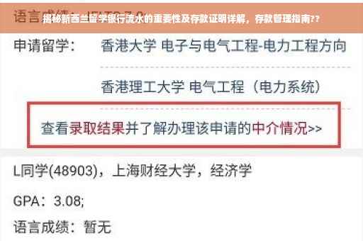 摘要:在新西兰留学申请过程中,银行流水的重要性不容忽视。正确查看银行流水和存款证明是留学准备的关键步骤之一。本文将为您揭秘银行流水的作用,并提供查看存款证明的正确方法,助您顺利完成新西兰留学申请。