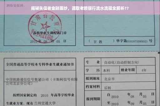 摘要:本文将揭示失信者的金融面纱,介绍调取老赖银行流水的流程。通过了解这一过程,可以更好地了解失信者的财务状况并采取相应措施。本文将详细介绍如何调取银行流水,包括所需材料和步骤,以帮助公众认清失信者的真实面目。