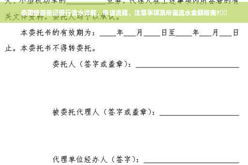 摘要:关于泰国旅游签证申请中的银行流水要求,本文详细解析了申请流程与注意事项。申请者需了解银行流水金额要求及证明力,确保流水账单真实、完整并符合规定。申请流程包括准备材料、递交申请、审核等步骤,期间需注意时间规划,避免误区。本文旨在帮助申请者顺利获得泰国旅游签证,享受美好的旅行体验。