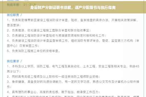 随着岁月的流逝,我们最终都会面临生命的终点,身后遗产的分配问题,是每一个家庭都必须面对的现实问题,身后财产分割证明书,作为遗产分配的重要法律依据,对于保障遗产分配的公平、公正和合理至关重要,本文将详细介绍身后财产分割证明书的内容、作用以及执行过程,帮助读者更好地理解和处理遗产分配问题。