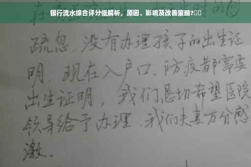 在当今社会,随着金融行业的快速发展,越来越多的人开始关注个人信用评估,银行流水作为评估个人信用的重要依据之一,其综合评分的高低直接关系到个人贷款、信用卡申请等方面的审批结果,有些人在申请贷款时却被告知银行流水综合评分低,那么这究竟意味着什么呢?本文将从以下几个方面进行详细解析。