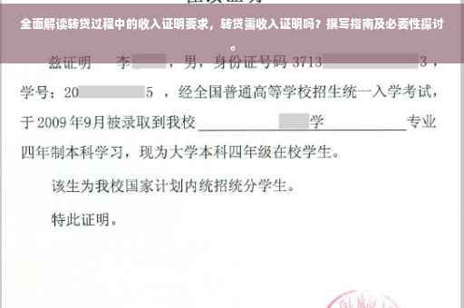 转贷过程中,收入证明是评估借款人还款能力的重要依据,借款人需了解各贷款机构的要求,确保提供的证明文件真实有效,在无法提供传统收入证明的情况下,借款人可以探索其他途径或选择特定产品,谨慎选择贷款机构,避免陷入不法分子的陷阱。