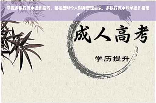 通过掌握多银行流水的操作技巧,个人可以更有效地管理财务,提高资金使用效率,在实际操作中,也需要注意风险防范、合规操作等问题,希望本文的介绍能对读者有所帮助,更好地实现个人财务管理目标。