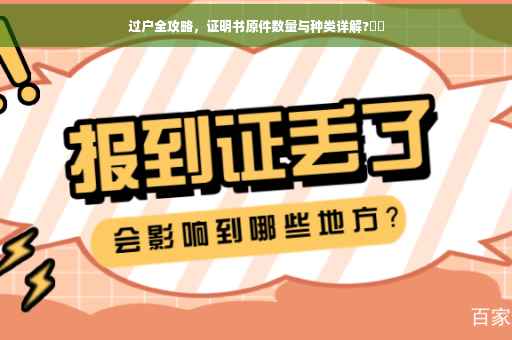 过户是一种法律允许的资产或权益从一方转移到另一方的过程,在过户过程中,为了确保交易的合法性和保障双方的权益,需要准备一系列证明书原件以证明相关信息的真实性和合法性,本文将详细阐述过户所需的证明书原件数量及种类,帮助您更好地了解和准备相关手续。