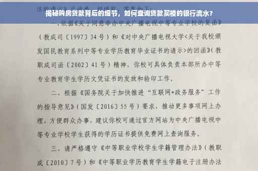 摘要:购房贷款背后隐藏着许多细节,其中银行流水是贷款买楼的重要一环。本文将介绍如何查看贷款买楼的银行流水,揭示其中的细节,包括注意事项和可能遇到的问题。通过了解银行流水的重要性,购房者可以更好地掌握购房贷款的相关知识,确保顺利购房。摘要字数控制在100-200字以内。