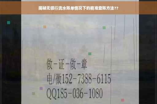 摘要:,,在没有银行流水账单的情况下,如何精准查账成为许多人关注的焦点。别担心,有多种方法可帮助你查看账单。可以通过网上银行或手机银行APP进行在线查询,方便快捷地查看交易明细。也可以前往银行柜台,提供身份证明和账户信息,请求工作人员协助查询账单。无论选择哪种方式,都能帮助你轻松掌握账户情况。