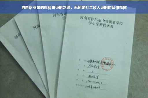 摘要:自由职业者面临无固定打工收入证明的挑战,需要寻找其他方式证明自身收入状况。本文将介绍自由职业者如何面对这一难题,包括提供个人银行账户流水、合同、发票等作为收入证明的依据。本文还将探讨自由职业者的职业特点和发展路径,帮助读者更好地理解和应对无固定打工收入证明的挑战。