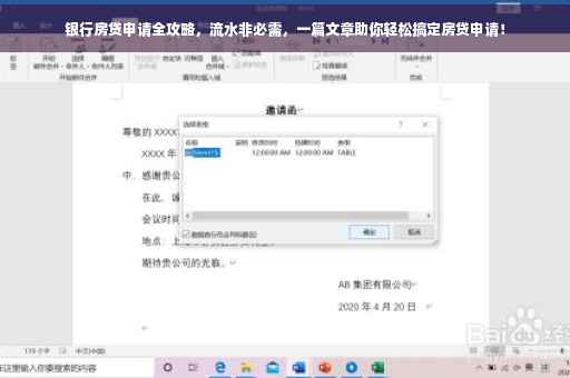 在银行房贷申请过程中,流水是银行审核贷款申请的重要依据之一,购房者应根据银行的要求提供完整的资料,并保持良好的征信记录,希望本文能帮助您顺利获得银行房贷,实现购房愿望。