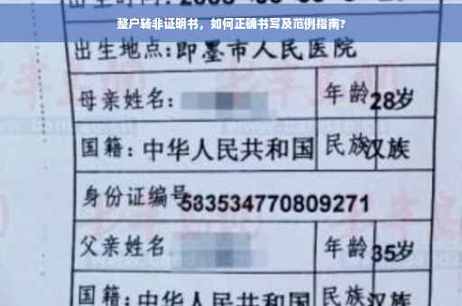 摘要:,,本文介绍了整户转非证明书的撰写方法。整户转非证明书是用于证明某一家庭全体成员转为非农业户口的证明文件。本文提供了相关的撰写指导和注意事项,包括证明书的格式、内容、填写方式等。撰写整户转非证明书需要准确、清晰地表述相关信息,确保证明文件的真实性和有效性。如需了解更多关于整户转非证明书的详细信息,请查阅相关文件或咨询有关部门。