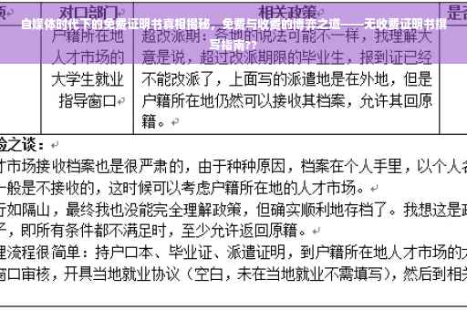 摘要:在自媒体时代,关于免费证明书的真相备受关注,引发了免费与收费之争的讨论。本文揭示了免费证明书的真实情况,探讨了自媒体时代下免费与收费之间的争议。本文还介绍了如何撰写不收取费用的证明书,以帮助公众更好地了解这一领域的情况。