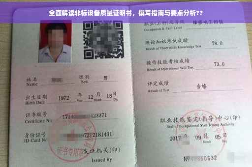 摘要:,,本文介绍了如何全面解读非标设备质量证明书,并详细阐述了非标设备质量证明书的编写方式。质量证明书是评估非标设备质量的重要依据,内容包括设备的基本信息、性能参数、质量检测报告等。通过解读质量证明书,可以更好地了解非标设备的性能和质量状况,确保设备的可靠性和安全性。本文旨在为相关人士提供指导,正确编写和解读非标设备质量证明书。