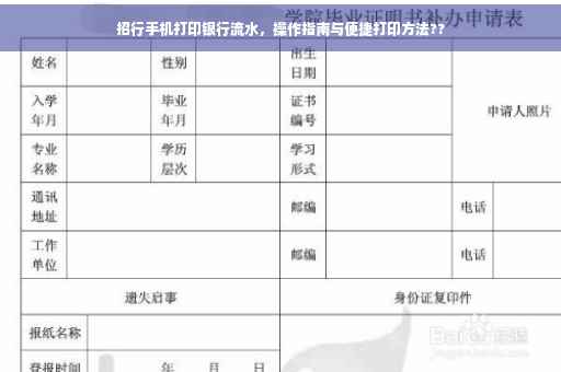 随着移动互联网的普及,越来越多的人选择使用手机银行来处理日常的银行业务,招商银行作为国内领先的银行之一,其手机银行功能强大,操作便捷,本文将详细介绍如何通过招行手机银行打印银行流水,帮助广大用户更好地利用手机办理银行业务。