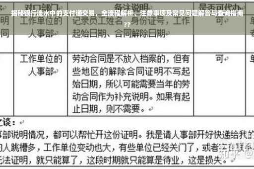摘要:本文将介绍银行流水中的支付通交易,包括全流程解析、注意事项以及常见问题解答。读者将了解如何查询支付通交易,包括从银行官网、手机银行等渠道进行查询的步骤。本文还将提醒注意事项,如保护个人信息、核对交易明细等,以帮助读者更好地管理自己的银行账户。