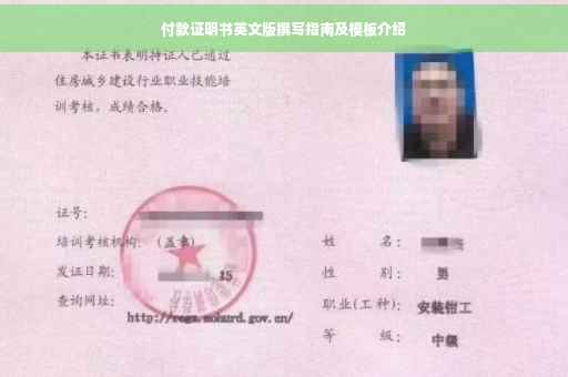 摘要:本指南提供关于付款证明书英文版的撰写方法和模板。通过本指南,您将了解如何正确撰写付款证明书英文版,包括必要的信息和格式要求。本指南还包括一个付款证明书英文版的模板,以帮助您快速完成证明书的撰写。无论您是企业还是个人,本指南都是您撰写付款证明书英文版的必备工具。