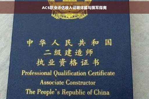 ACS职业评估收入证明是一种由权威机构出具的证明文件,主要用于评估个人在计算机领域的专业能力、工作经验以及收入水平,该证明对于求职、晋升、调整薪资等方面具有重要的参考价值,通过ACS职业评估收入证明,雇主可以更加客观地了解求职者的实际能力,从而做出更为合理的招聘或晋升决策。