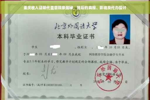 摘要:重庆存在收入证明代盖章现象,背后涉及多种原因和影响。本文将探讨这一现象背后的真相,包括代办机构的运作方式、个人需求和社会背景等因素。文章将分析代盖章行为的影响,包括法律风险、道德伦理和社会信任等方面。通过揭示真相和探讨影响,旨在引起公众对此现象的关注和思考。