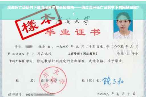 摘要:本文详细介绍了澳洲死亡证明书的下载流程以及注意事项。通过访问澳洲死亡证明书下载网站,用户可以了解到从申请到获取证明书的整个过程。文章强调了注意事项,包括准备必要的文件、遵守规定流程以及保护个人隐私等。本文旨在帮助公众顺利完成死亡证明书的下载,避免不必要的困扰。