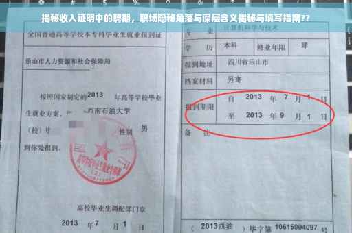 随着社会的不断发展,职场竞争愈发激烈,越来越多的人开始关注自己的职业发展,在职场中,收入证明是一份重要的文件,它不仅证明了个人的经济能力,也是评价个人价值的一种重要指标,而在收入证明上,聘期这一概念显得尤为重要,本文将深入探讨收入证明上的聘期含义、作用以及背后隐藏的职场规则和细节。