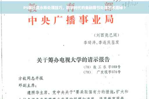 随着数字时代的来临,我们的生活越来越离不开金融交易,银行流水作为个人或企业金融活动的重要记录,其细节处理显得尤为关键,有时候我们需要对银行流水进行编辑处理,以便更好地展示信息或应对某些特定需求,本文将介绍如何使用PS软件进行抠图处理银行流水,帮助您轻松掌握这一技能。