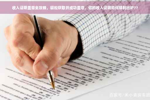 在现代社会,收入证明是办理贷款、信用卡、签证等手续的重要材料之一,而盖章则是收入证明具有法律效力的关键,本文将为你详细介绍如何顺利获取收入证明并成功盖章,让你轻松解决这一难题。