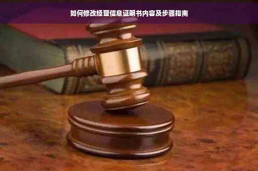 3、问:在更改经营信息证明书过程中,需要注意什么?答:在更改经营信息证明书的过程中,需要注意提前了解相关法规和政策、保留好原始材料、注意申请时限以及保持与工商部门的沟通等,八、结语随着市场的不断变化和企业的不断发展壮大,更改经营信息证明书成为了一项重要的任务,通过本文的介绍,希望能够帮助您更好地了解如何更改经营信息证明书,并在此过程中避免一些不必要的麻烦,在操作过程中,请务必遵守相关法规和政策,确保操作的合法性和有效性,如有更多疑问或需要帮助,建议咨询专业律师或相关机构。