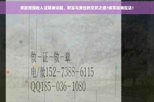 在当今社会,随着金融市场的日益繁荣,越来越多的人选择通过贷款来实现自己的梦想和目标,贷款并非简单的借款过程,其中涉及到的担保收入证明表更是引起了广泛关注,本文将详细介绍贷款担保收入证明表的相关知识,让读者了解担保背后的财富与责任。