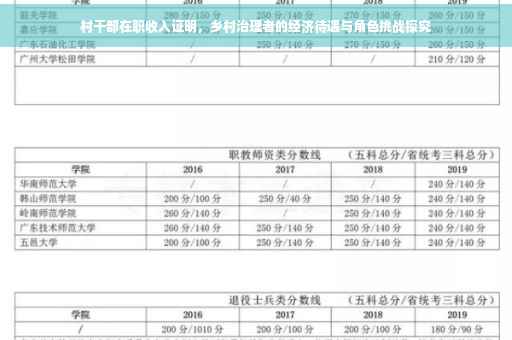 随着乡村振兴战略的深入推进,村干部的角色日益受到社会关注,他们不仅是乡村治理的主体力量,也是推动农村发展的重要引擎,关于村干部的待遇问题,尤其是他们的在职收入证明,一直是公众关注的焦点,本文将从多个角度探讨村干部的在职收入证明问题,揭示其背后的经济待遇与角色挑战。
