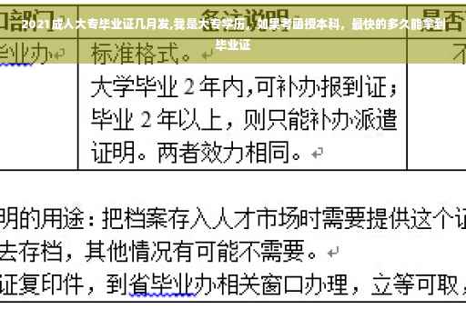 根据以往经验,2021年成人大专毕业证的发放时间一般在毕业后3-6个月左右。