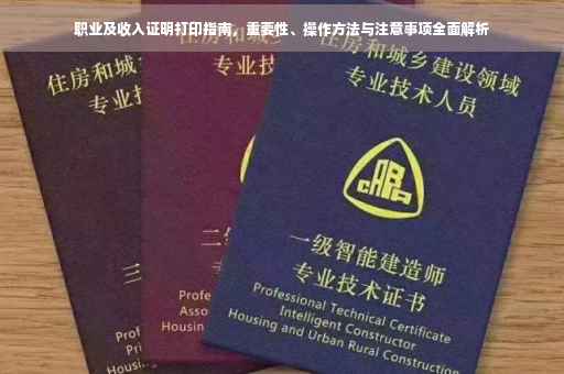 摘要:本文将全面解析职业及收入证明打印的重要性,并为您提供操作指南。职业及收入证明对于个人求职、贷款申请等方面至关重要,能够证明个人的职业身份和收入水平。本文将介绍如何打印职业及收入证明,包括准备相关材料、选择正确的打印机和纸张、核实信息无误等步骤。遵循本文指南,您将能够顺利打印出有效的职业及收入证明。