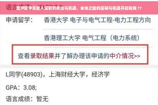 随着全球化的推进和国际化教育的普及,越来越多的学子选择赴澳大利亚留学深造,在申请留学过程中,许多学生面临着一个共同的问题:无法提供收入证明,本文将探讨澳洲留学无收入证明的背景、挑战与应对策略,帮助广大留学生更好地应对这一挑战。